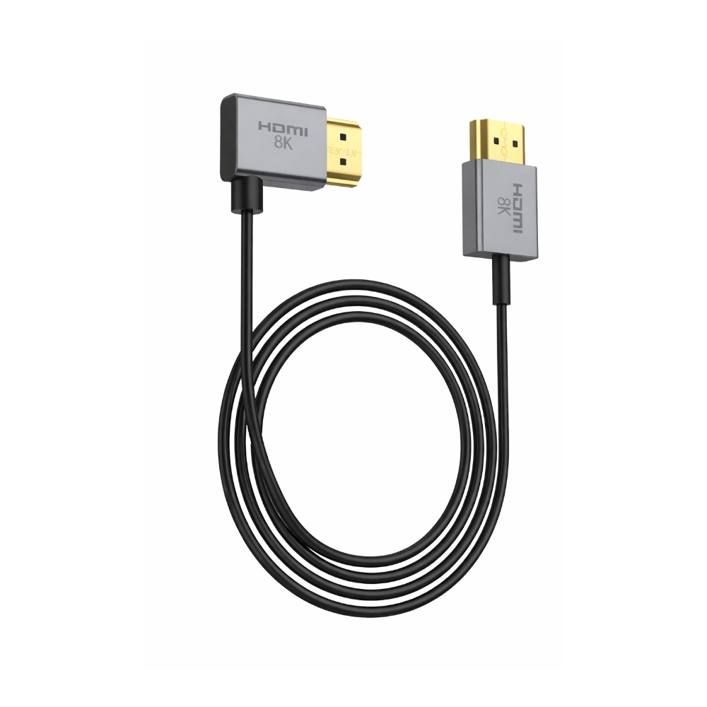Its main differentiators are the ultra-thin 2.5mm cable body, left-angle connector design, and coaxial structure for tight-space and wall-mount AV installations.